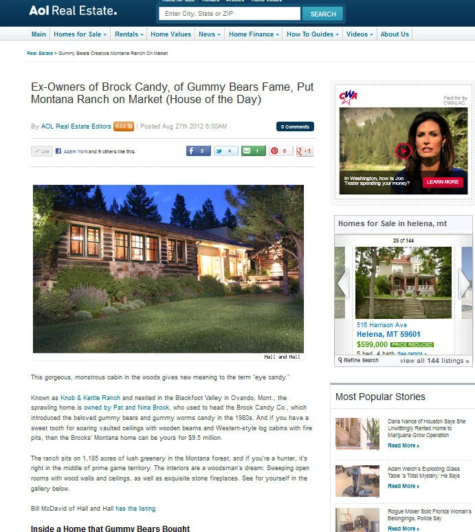Montana Ranch For Sale Featured in The Wall Street Journal, AOL Real Estate & Curbed.com